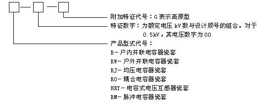 例:型号:RM—22002系220KV脉冲电容器瓷套,设计顺序号为02。